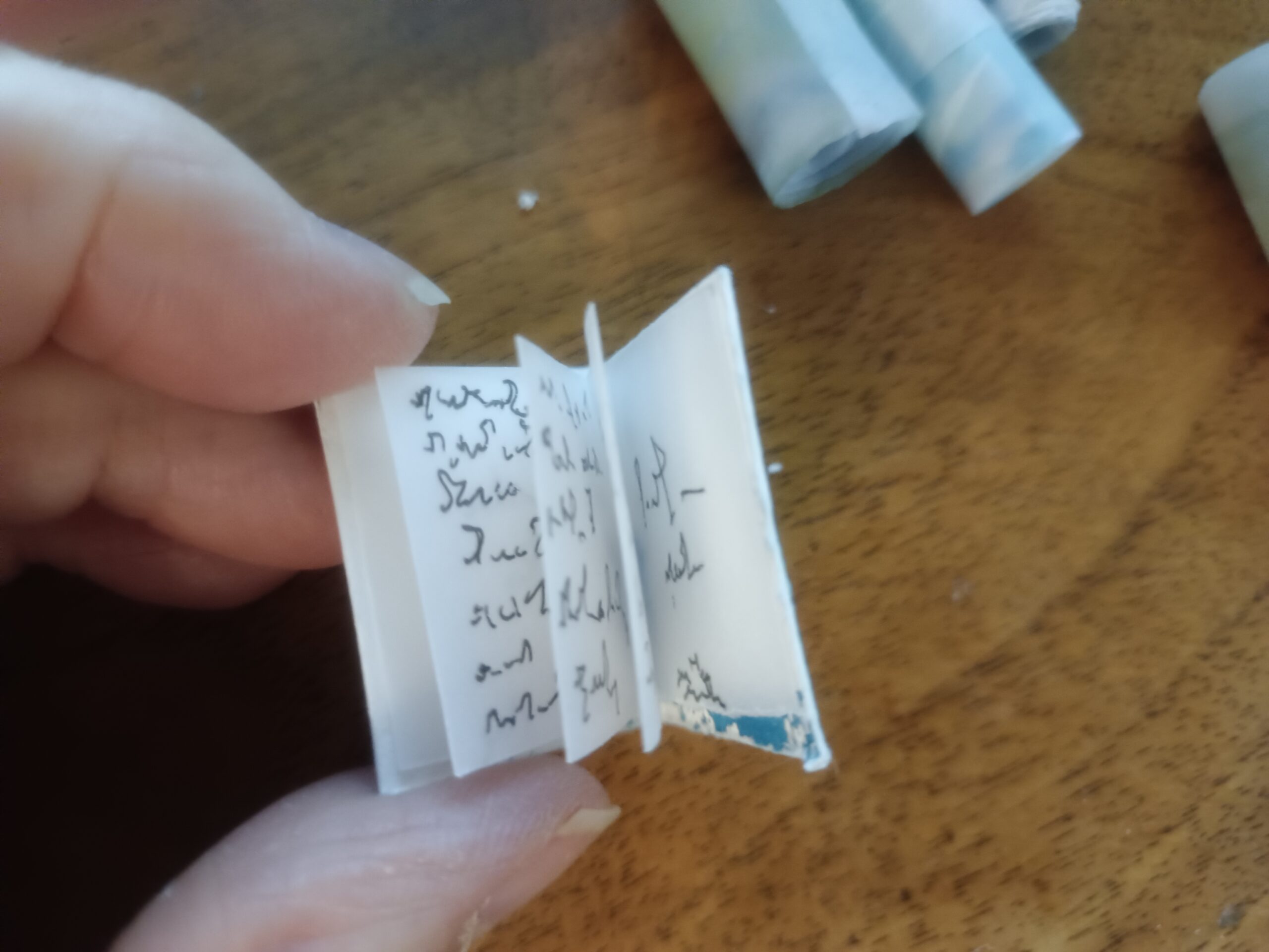Mini carnet entièrement fait main (3 x 2,5 cm).