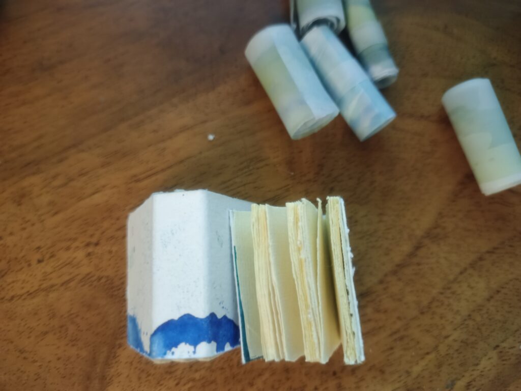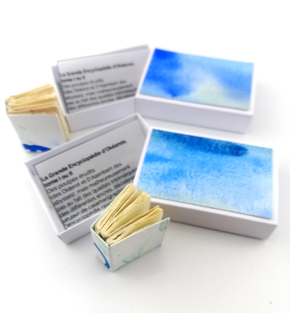 Deux carnets entièrement faits main (couverture en papier aquarelle 300 g décoré, intérieur en papier récupéré)