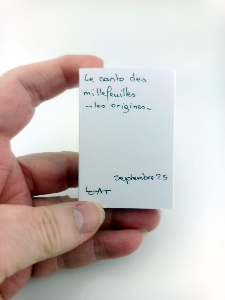Un accordéon saturé de bleus : chaque pli révèle une variation nouvelle, comme si l’océan changeait d’humeur à chaque page. Compact et débordant à la fois, ce carnet concentre une infinité de reflets en un minuscule millefeuille et invite à une rêverie balnéaire. Il est l’ancêtre direct du Canto des Millefeuilles, dont il annonce la prolifération foisonnante.