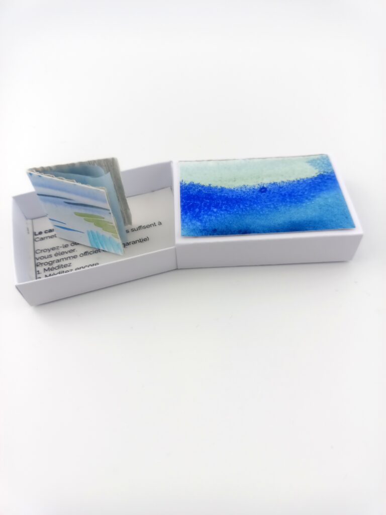 Un carnet minuscule qui ne garde que l’essentiel : le reflet, le bleu, le frémissement.