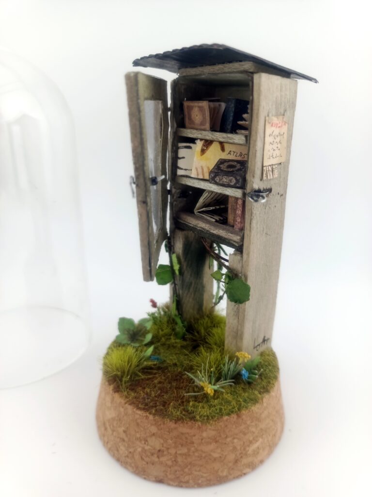J’explore un univers poétique et onirique à travers l’aquarelle, l’encre de Chine, des découpages et des collages de mes dessins. Inspirée par la nature, les voyages mais aussi la science fiction, je crée des carnets, des boîtes miniatures et je décore des dômes de verre.